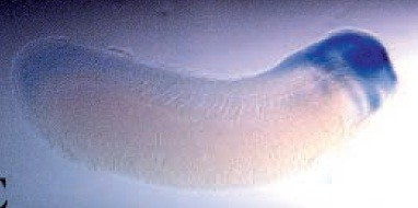 eif4a3 (eukaryotic translation initiation factor 4A3) gene expression in Xenopus laevis embryo, assayed via in situ hybridization, NF stage 27, lateral view, anterior right, dorsal up. This image is extracted from figure published in: Weinstein DC et al. (1997), Image published in: Weinstein DC et al. (1997) Copyright © 1997. Image reproduced with permission of the Publisher and the copyright holder. This is an Open Access article distributed under the terms of the Creative Commons Attribution License.
