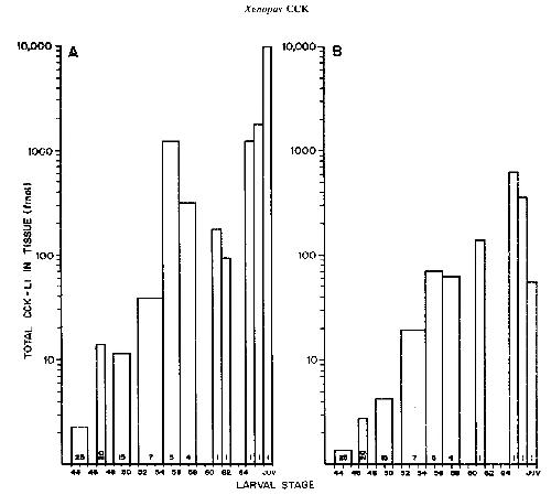 Temporal pattern of appearance and distribution of cholecystokinin-like peptides during development in Xenopus laevis.