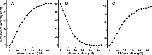 Figure 2. Fluorescence titrations are shown of Xenopus interphotoreceptor retinol-binding protein (xIRBP) binding all-trans retinol. The concentration of xIRBP was 0.89 μM in each panel. A: The titration of IRBP with all-trans retinol in this panel is followed by monitoring the increase in retinol fluorescence compared to a fluorescence matched solution of N-acetyl-L-tryptophanamide (excitation: 330 nm; emission: 480 nm). B: The titration shown follows the quenching of intrinsic protein fluorescence by bound retinol (excitation: 280 nm; emission: 340 nm). C: The titration follows ligand binding by monitoring energy transfer (excitation: 280 nm; emission: 480 nm).