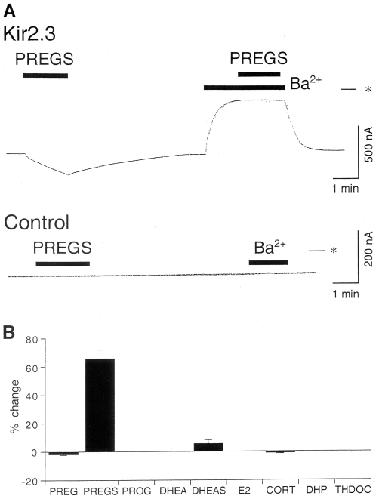 Pregnenolone sulfate potentiates the inwardly rectifying K channel Kir2.3.