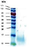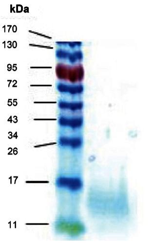 Fig. 2. Sodium dodecyl sulfate-polyacrylamide gel electrophoresis (SDS-PAGE) of each gintonin prepared from ginseng root. SDS-PAGE of edible gintonin obtained from anion exchange chromatography as shown in Fig. 1. Coomassie Brilliant Blue staining was used to stain protein moieties of gintonin. Crude gintonin prepared from ginseng root in SDS-PAGE showed that apparent molecular weight of gintonin was about 13 kDa.