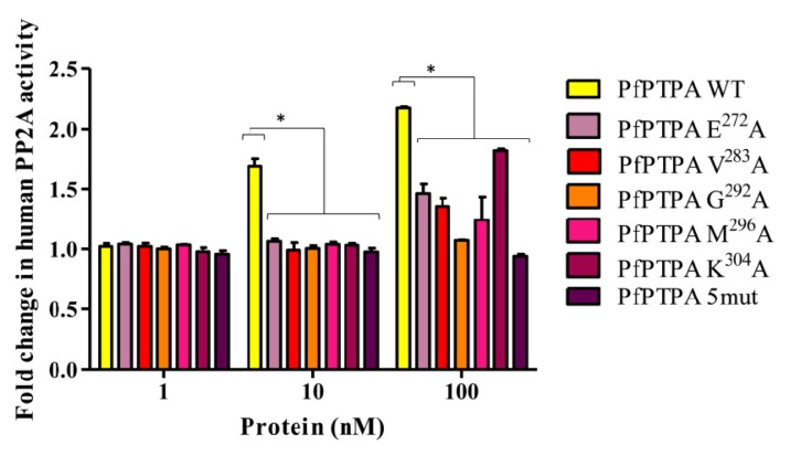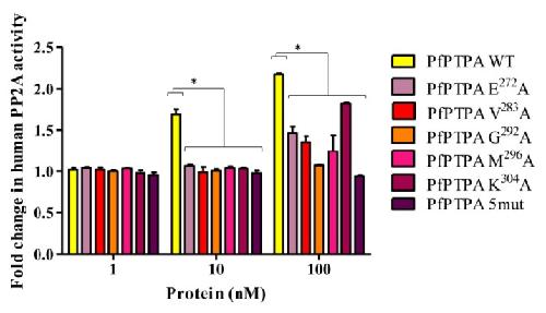 PhosphoTyrosyl phosphatase activator of Plasmodium falciparum: identification of its residues involved in binding to and activation of PP2A.