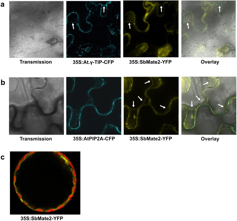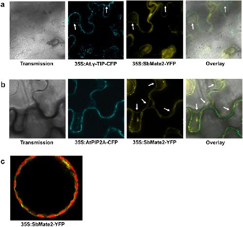 Genomic gene clusters for the biosynthesis of chemical defence compounds are increasingly identified in plant genomes. We previously reported the independent evolution of biosynthetic gene clusters for cyanogenic glucoside biosynthesis in three plant lineages. Here we report that the gene cluster for the cyanogenic glucoside dhurrin in Sorghum bicolor additionally contains a gene, SbMATE2, encoding a transporter of the multidrug and toxic compound extrusion (MATE) family, which is co-expressed with the biosynthetic genes. The predicted localisation of SbMATE2 to the vacuolar membrane was demonstrated experimentally by transient expression of a SbMATE2-YFP fusion protein and confocal microscopy. Transport studies in Xenopus laevis oocytes demonstrate that SbMATE2 is able to transport dhurrin. In addition, SbMATE2 was able to transport non-endogenous cyanogenic glucosides, but not the anthocyanin cyanidin 3-O-glucoside or the glucosinolate indol-3-yl-methyl glucosinolate. The genomic co-localisation of a transporter gene with the biosynthetic genes producing the transported compound is discussed in relation to the role self-toxicity of chemical defence compounds may play in the formation of gene clusters.
