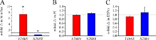Figure 7. Transport characteristics and membrane expression of AQP1Y186N and AQP10N208Y. Experimental conditions were as described in Fig. 4. Data expression is also as described in Fig. 4. (A) Si influx. Data are expressed as means ± SE of 10 oocytes among three to four experiments. The asterisk is used to indicate that the mean is significantly different statistically (*, P < 0.05) compared with the wild-type channel. (B) Water permeability. Data are expressed as means ± SE of three to five oocytes among three to four experiments. (C) AQP expression at the cell surface (EXPcs). Data are expressed as means ± SE among three experiments.