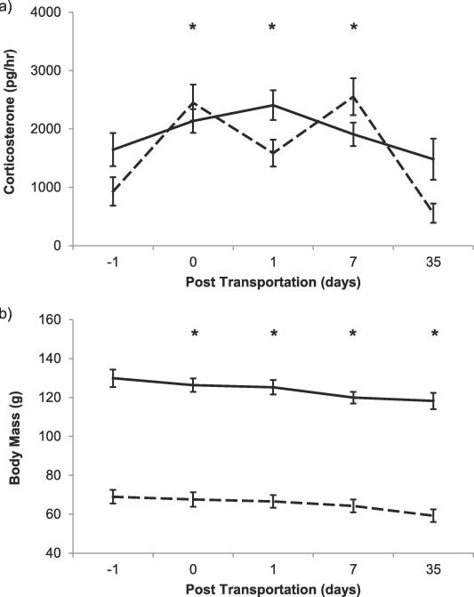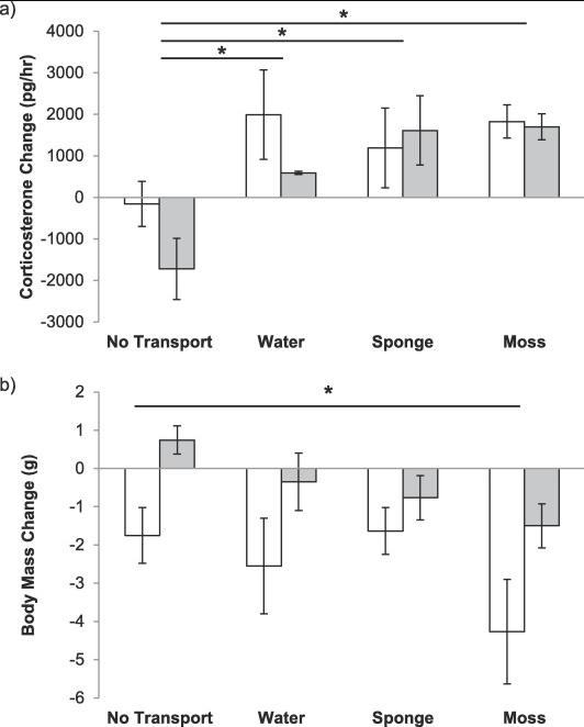 Understanding the immediate and longer-term effects of transportation and re-housing in a laboratory species is crucial in order to refine the transfer process, enable the optimal introduction of new animals to a novel environment and to provide a sufficient acclimatisation period before usage. Whilst consideration of animal welfare in most model vertebrate species has received attention, little quantitative evidence exists for the optimal care of the common laboratory amphibian Xenopus laevis. Techniques for the non-invasive welfare assessment of amphibians are also limited and here a non-invasive physiological assay was developed to investigate the impacts of transportation, transport medium and re-housing on X. laevis. First the impacts of transportation and transport medium (water, damp sponge or damp sphagnum moss) were investigated. Transportation caused an increase in water-borne corticosterone regardless of transport medium. Frogs transported in damp sphagnum moss also had a greater decrease in body mass in comparison to frogs not transported, suggesting that this is the least suitable transport medium for X. laevis. Next the prolonged impacts of transportation and re-housing were investigated. Frogs were transported between research facilities with different housing protocols. Samples were collected prior to and immediately following transportation, as well as 1 day, 7 days and 35 days after re-housing. Water-borne corticosterone increased following transportation and remained high for at least 7 days, decreasing to baseline levels by 35 days. Body mass decreased following transportation and remained lower than baseline levels across the entire 35 day observation period. These findings suggest the process of transportation and re-housing is stressful in this species. Together these findings have important relevance for both improving animal welfare and ensuring optimal and efficient scientific research.