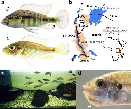 Salzburger, Adaptive sequence evolution in a color gene involved in the formation of the characteristic egg-dummies of male haplochromine cichlid fishes. 2007, Pubmed