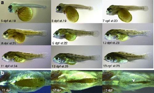 Parichy, Normal table of postembryonic zebrafish development: staging by externally visible anatomy of the living fish. 2009, Pubmed