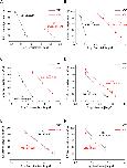 Fig. 3. Determination of the dose response relationships for levamisole (A); pyrantel (B); ivermectin (C); nicotine (D); nornicotine (E) and anabasine (F) on H. contortus L3 larvae using the automated larval migration assay (ALMA). Results are shown as the mean ± se from 3 distinct ALMA assays performed with 7500 H. contortus L3 larvae from the Weybridge isolate (in black) or Kokstad isolate (in red). IC50 values are indicated on the graphs. (For interpretation of the references to colour in this figure legend, the reader is referred to the Web version of this article.)