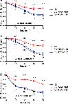 Fig. 3. Determination of the dose response relationships for levamisole (A); pyrantel (B); ivermectin (C); nicotine (D); nornicotine (E) and anabasine (F) on H. contortus L3 larvae using the automated larval migration assay (ALMA). Results are shown as the mean ± se from 3 distinct ALMA assays performed with 7500 H. contortus L3 larvae from the Weybridge isolate (in black) or Kokstad isolate (in red). IC50 values are indicated on the graphs. (For interpretation of the references to colour in this figure legend, the reader is referred to the Web version of this article.)