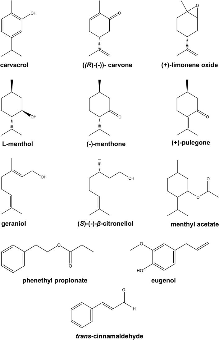 Fig. 1. Chemical structures of monoterpenoid compounds used in the present study.