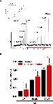 Fig. 7. A. Sample trace for the A. suum muscle flap contraction experiments. Inset: concentration-response plots for acetylcholine alone (n = 6, black) and in the presence of 0.1 μM menthol (n = 6, red). pEC50 (mean ± SEM) and EC50 (mean, μM) values were respectively: 5.2 ± 0.2 and 7.0 μM for acetylcholine alone; 5.2 ± 0.2 and 6.5 μM in the presence of 0.1 μM menthol. Rmax (mean ± SEM, g) values were: 1.7 ± 0.2 g for acetylcholine alone and 2.0 ± 0.2 g in the presence of 0.1 μM menthol. Hill slope (nH) (mean ± SEM) values were: 0.8 ± 0.2 for acetylcholine alone and 0.8 ± 0.1 in the presence of 0.1 μM menthol. Bottom was constrained to zero for curve fitting. B. Bar chart summarizing the results showing significant potentiation in amplitude of acetylcholine mediated contractions in the presence of 0.1 μM menthol. *P < 0.05, ***P < 0.001; significantly different as indicated; paired t-tests. (For interpretation of the references to colour in this figure legend, the reader is referred to the Web version of this article.)