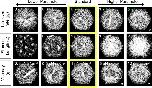 Fig 6. Changing conditions that destabilize or rescue aster formation.(A) To determine whether asters could be destabilized we ran simulations where conditions that produced stable asters were changed to conditions that did not. Conditions for simulations forming quasi-stable asters after 1,000 time steps (center) were changed and the network was followed for 1,000 additional time steps (left or right column). Stable asters are resistant to disruption under most changes except when rates of filament turn-over are increased or when motor attachment rates are reduced. (B) To determine whether asters could be rescued from non-steady states we ran simulations starting with conditions that did not produce stable asters or produced multiple asters before switching to conditions that only formed single asters from initially disorganized networks. Parameters producing the starting morphology after 1,000 time steps are listed in the center columns while the altered parameters are listed in the right (lower) or left (higher) columns. Single aster morphologies could be rescued by changes in motor properties of stiffness or stretch length but could not be rescued by changes in filament length. In all cases the morphology of filament arrays remodeled after 2,000 time steps are shown either under the âLower Parameterâ or âHigher Parameterâ columns. |