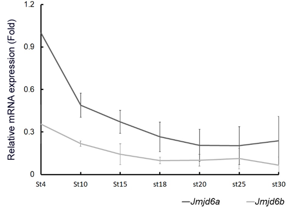 S1 Fig. Temporal Jmjd6a and b gene expression in Xenopus laevis development.