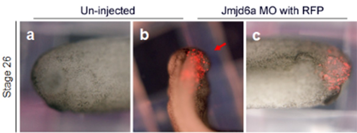 Fig 4. Knockdown of Jmjd6a reduces the expression of genes related to Xenopus eye development.