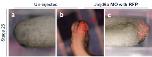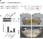 To confirm proper MO injection, plasmid containing RFP (red fluorescence protein) cDNA was co-injected into one blastomere at the 8-cell stage. (A) Lateral view of un-injected side of embryo. (B) Dorsal view of embryo. RFP-injected side of embryo is shown to the right. (C) Lateral view of RFP-injected side of embryo. Note the red fluorescence in RFP-injected side of embryo.