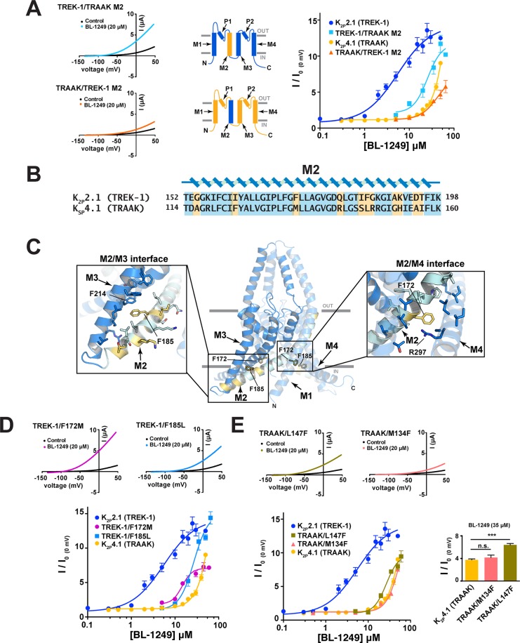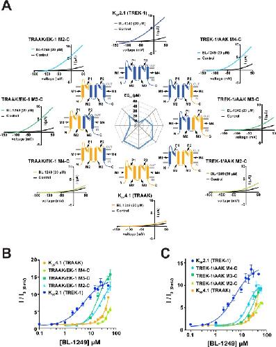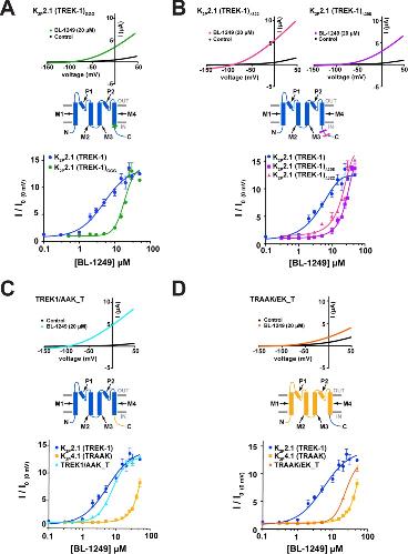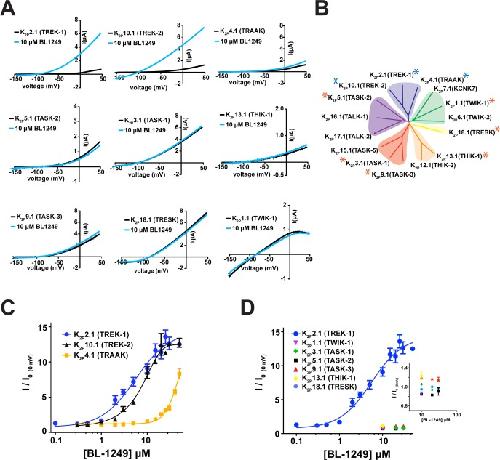 respectively. (D) BL-1249 responses of indicated K2P channels.