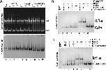 Figure 5. RanGTP modulates Imp9-H2A-H2B interactions for H2A-H2B deposition.(A, B) DNA is titrated at 0.5, 1 and 2 molar equivalents of preformed Imp9â¢H2A-H2B (equimolar Imp9 and H2A-H2B mixed together) or RanGTPâ¢Imp9â¢H2A-H2B (equimolar Imp9, H2A-H2B and RanGTP added together). Images of the same native gel, Coomassie stained in (A) and ethidium bromide stained in (B), are aligned for comparison. DNA cannot compete for H2A-H2B from the Imp9â¢H2A-H2B, leaving free DNA (B, increasing amounts from lanes 5 to 7) and intact Imp9â¢H2A-H2B (A, lanes 5â7). In contrast, DNA can compete for H2A-H2B from RanGTPâ¢Imp9â¢H2A-H2B resulting in Imp9â¢RanGTP complexes (A, lanes 8â10), DNAâ¢H2A-H2B complexes and very little free DNA (B, lanes 8â10). (C, D) Imp9 or Imp9â¢RanGTP (equimolar Imp9 and RanGTP added together) is titrated at 0.5â1.5 molar equivalents of H2A-H2B (in a DNAâ¢H2A-H2B 1:7 complex). Images of the same native gel, ethidium bromide stained in (C) and Coomassie stained in (D), are aligned for comparison. Imp9 releases free DNA from DNAâ¢H2A-H2B (C, lanes 3â6) and binds histones to form an Imp9â¢H2A-H2B complex (D, lanes 4â6). By comparison, Imp9â¢RanGTP releases little free DNA from DNAâ¢H2A-H2B (C, lanes 7â10). (E) The presence of RanGTP and Imp9 facilitates H2A-H2B deposition onto the nucleosome. Nucleosome assembly assay where either H2A-H2B, Nap1â¢H2A-H2B, Imp9â¢H2A-H2B or RanGTPâ¢Imp9â¢H2A-H2B is titrated in molar equivalents of 0.5 and 0.75 to tetrasome (TET; 2.5 µM). Nap1 and Imp9â¢RanGTP can form nucleosomes (NUC) while Imp9 cannot. Coomassie staining in Figure 5âfigure supplement 1B. (F) Nucleosome disassembly assay where either Nap1, Imp9 or Imp9â¢Ran is titrated in molar equivalents of 0.5 and 0.75 to constant nucleosome (NUC; 2.5 µM). Imp9 can disassemble nucleosomes to tetrasomes while Nap1 and Imp9-Ran cannot. Coomassie staining in Figure 5âfigure supplement 1C.Figure 5âfigure supplement 1. RanGTP modulates Imp9-histones interaction for H2A-H2B deposition.(A) Controls for nucleosome assembly assay where either Nap1, Imp9 or Imp9â¢RanGTP is titrated in molar equivalents of 0.25, 0.5 and 0.75 to tetrasome (TET; 2.5 µM). These proteins do not alter the tetrasome. (B) Nucleosome assembly assay where either H2A-H2B, Nap1â¢H2A-H2B, Imp9â¢H2A-H2B or RanGTPâ¢Imp9â¢H2A-H2B is titrated in molar equivalents of 0.5 and 0.75 to tetrasome (TET; 2.5 µM). Nap1 and Imp9â¢RanGTP can form nucleosomes (NUC) while Imp9 cannot. Gels are Coomassie stained (ethidium bromide stained gels are shown in Figure 5E). (C) Nucleosome disassembly assay where either Nap1, Imp9 or Imp9â¢RanGTP is titrated in molar equivalents of 0.5 and 0.75 to constant nucleosome (NUC; 2.5 µM). Imp9 can disassemble nucleosomes to tetrasomes while Nap1 and Imp9-RanGTP cannot. Gels are Coomassie stained (ethidium bromide stained gels are shown in Figure 5F). |