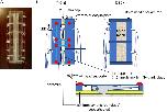 Top view photo (A) and schematic drawings of the chamber and components (B). The chamber holds six tadpoles between the two acrylic plates that are 2 mm thick à 3 cm wide. There is a gap between the two plates of 2.3â3 mm where the tadpoles are positioned. A strip of mesh is glued under the gap of the two plates with acrylic glue and forms a sling under the tadpoles. Six rectangular rods are glued under the acrylic plates. The animal is held snugly in the chamber as follows: the ventrolateral sides of the head are supported by 0.4 mm styrene rods or strips of Sylgard glued to the lower edge of the acrylic plates. The head is supported by a Sylgard block positioned in front of the head. It is held in place by the acrylic plates on either side and the coverslip laid over the animal. The tail is supported on both sides by two strips of Sylgard glued to the painted inner edge of the acrylic plates. LEDs are positioned on each side of the chamber at eye level for the tadpoles. LEDs are glued to the acrylic plates with epoxy glue. Before mounting the LEDs on the chamber, a slit is cut in the plastic dome on top of the LED which provides more even illumination to the eye. Wires are soldered to LEDs. Either the anodes or the cathodes are connected to a common line. The other terminals are connected to the power source independently through resistors. Tadpoles are inserted in the slit. The head supporter is positioned to immobilize the tadpoles. Cover slips are overlaid on the tadpoles and attached to the acrylic plates using utility wax.