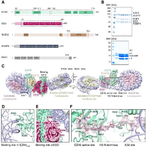 Jani, Histone H3 tail binds a unique sensing pocket in EZH2 to activate the PRC2 methyltransferase. 2019, Pubmed