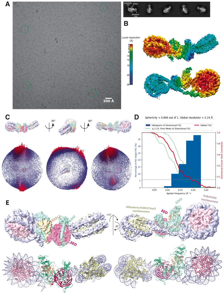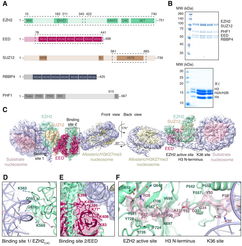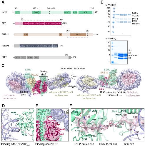 Poepsel, Cryo-EM structures of PRC2 simultaneously engaged with two functionally distinct nucleosomes. 2018, Pubmed