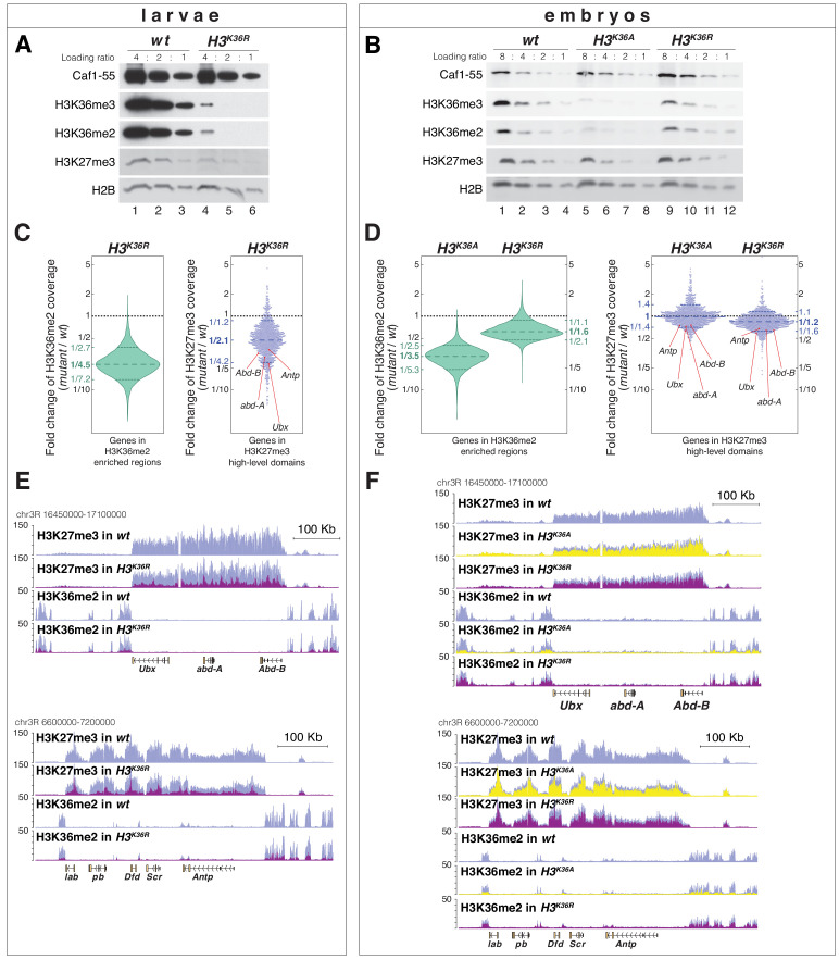Meers, Histone gene replacement reveals a post-transcriptional role for H3K36 in maintaining metazoan transcriptome fidelity. 2017, Pubmed