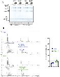 Figure 2—figure supplement 1 The EZH2CXC-DNA interaction interface is critical for H3K27 methylation on nucleosomes (related to Figure 2). (A) Coomassie-stained 4–12% SDS-PAGE of the HMTase reactions shown in Figure 2C. Xenopus laevis (X.l.) nucleosomes were used for these experiments. The short 5 kDa PHFC fragment is not visible on this gel. (B) Left: Mass spectrometry-based HMTase assays monitoring H3K27me1 formation by PRC2 (blue; upper two panels) and PRC2CXC>A (green; lower two panels) on H318-42 peptides. Representative full ESI MS Spectra (top part) and deconvoluted spectra (lower part) are shown for the individual runs. For both runs, peaks indicated by the brackets were used for quantification of H3K27me1 formation. Right: Symbols represent percentages of peptides carrying H3K27me1 in technical triplicate experiments; error bars show SD. |