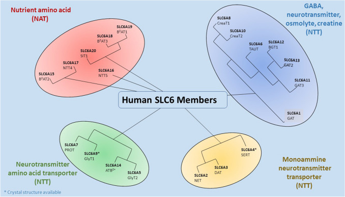 Genes referenced: slc6a1 slc6a11 slc6a12 slc6a13 slc6a14 slc6a14.2 slc6a15 slc6a16 slc6a17 slc6a19 slc6a2 slc6a20 slc6a3 slc6a4 slc6a5 slc6a6 slc6a8 slc6a9