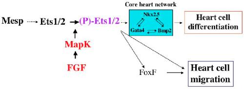 Dual developmental role of transcriptional regulator Ets1 in Xenopus cardiac neural crest vs. heart mesoderm.