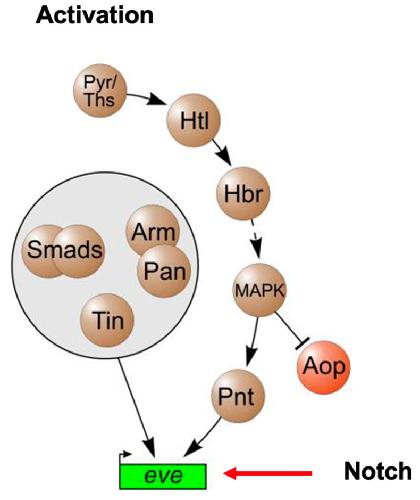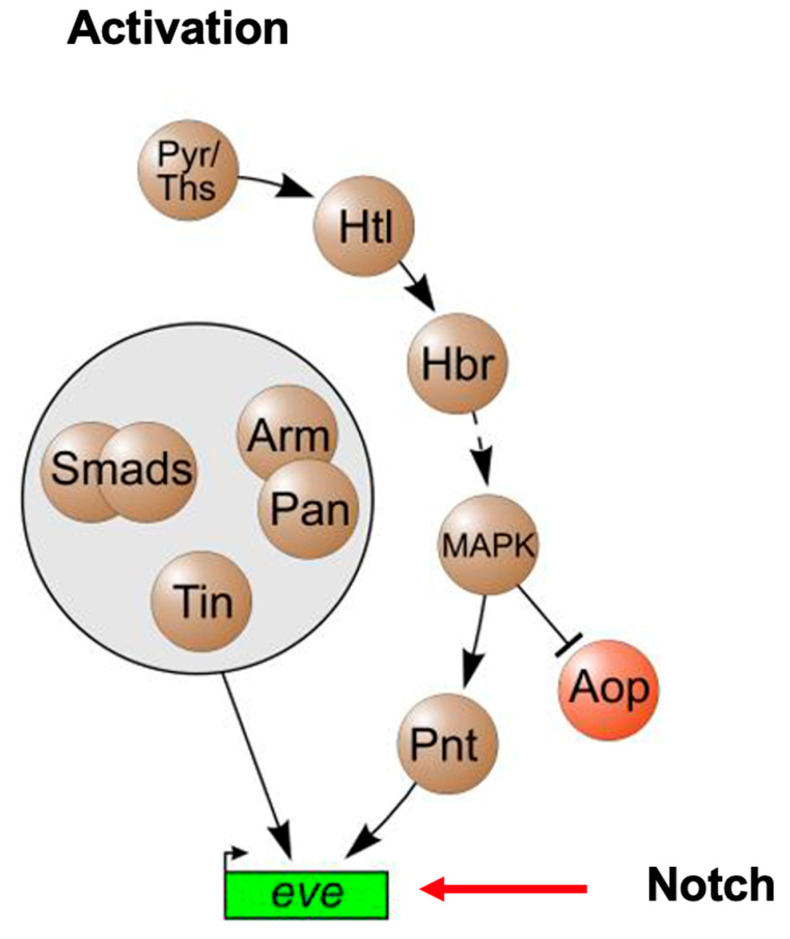 Figure 6. Cardiac mesoderm activation pathways in Drosophila heart development (adapted from Bryantsev and Cripps, 2009, Biochim Biophys Acta. 2009 April; 1789(4): 343–353) [19].