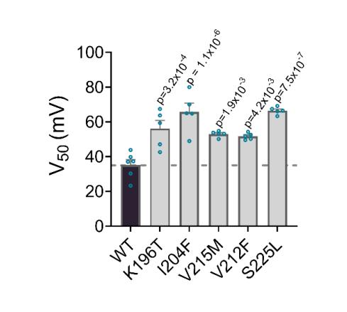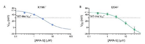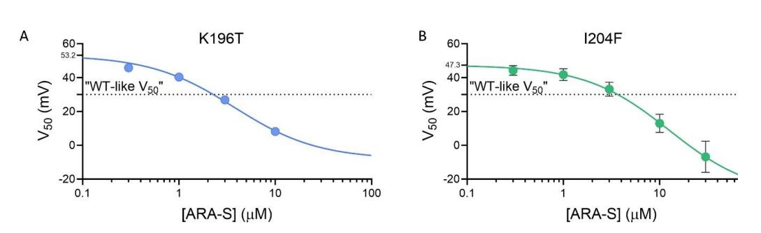 Supplementary Figure 6. Concentration-response curves of how V50 of mutants K196T and I204F