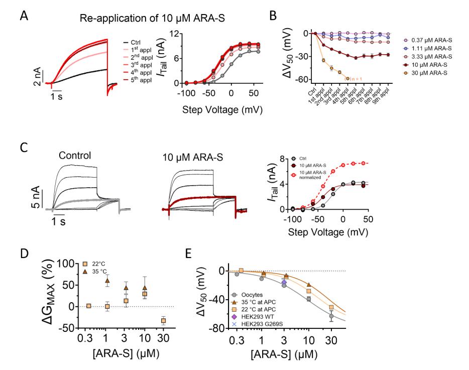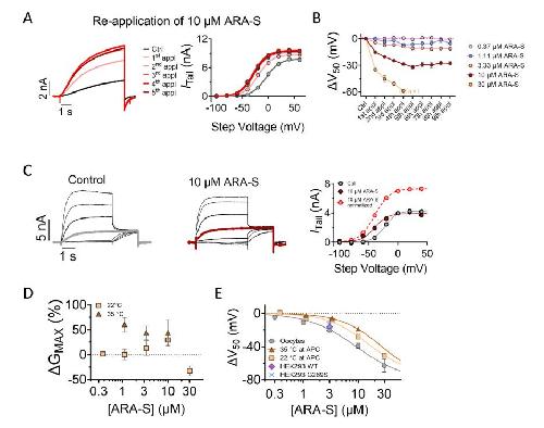 automated patch-clamp. A) Representative traces of the re-application of ARA-S under control