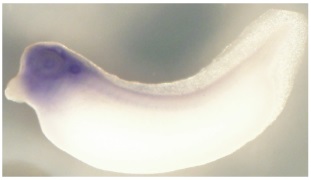 Larger Image fbxo46 (F-box protein 46) gene expression in Xenopus laevis embryo, assayed via in situ hybridization, NF stage 30, lateral view, anterior left, dorsal up. This image is extracted from figure published in: Saritas-Yildirim B et al. (2015), Image published in: Saritas-Yildirim B et al. (2015) Image downloaded from an Open Access article in PubMed Central. Image reproduced on Xenbase with permission of the publisher and the copyright holder.